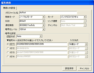 キー先頭のラジオボタンで、使用する暗号キーの番号(1〜4)を選択します。通信相手とデフォルトキーを合わせてください。(通常は1) |