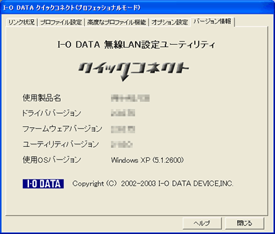 プロフェッショナルモード >> バージョン情報