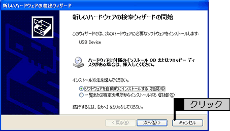 表示された画面にて、[次へ]をクリックしてしまった場合は、次の手順にしたがってください。