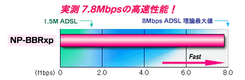 「NP-BBRxp」は、一般家庭での利用をコンセプトとした有線ルータです。ADSL/CATVインターネット接続を複数のパソコンで共有できます。低価格ながら最大7.8Mbpsの高速転送性能を持ち、8MbpsクラスのADSLサービスにも十分対応できます。