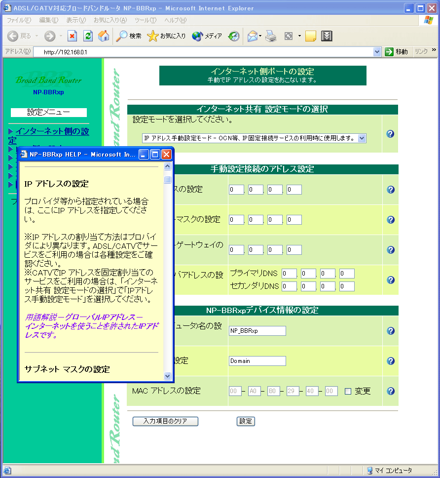 | NP-BBRxp | <ブロードバンドルータ> |