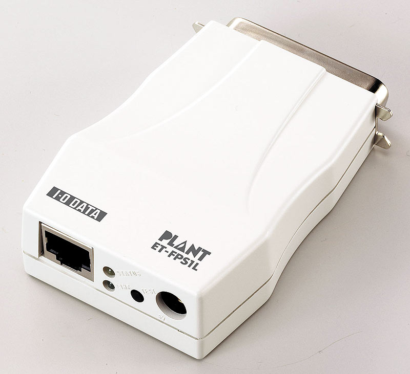 「ET-FPS1L」は10BASE-Tおよび100BASE-TXの両方に対応し、ECP対応パラレルポートを1つ装備した直結型コンパクト・プリントサーバです。Webブラウザによる簡単な設定とOSの標準機能のみでの印刷が可能な完全ソフトレス設計となっていますので、設定や印刷のために専用アプリケーションのインストールが必要ありません。「パソコンが複数台あるんだけど・・・」といったブロードバンドユーザや、「Macintoshからも印刷したい・・・」といったSOHOユーザが手軽にお使いいただくことができます。