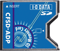 「CFSD-ADP」はSDメモリーカードやマルチメディアカードをCF Type I スロットで読み書きするためのアダプタです。本製品により、SDメモリーカードをCF