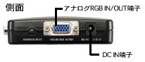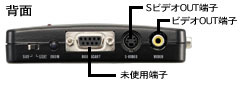 ●対応テレビ:コンポジットビデオ入力端子及びSビデオ入力端子搭載のNTSC方式テレビ ●入力端子:アナログRGB(D-sub15ピン)×1 ●出力端子:アナログRGB(D-sub15ピン、スルー出力用)×1、コンポジットビデオ×1、Sビデオ×1 ●電源:ACアダプタ(AC入力 100V、DC出力 5V 2A) ●外形寸法:114.5(W)×26.5(H)×94(D) ●質量:147g