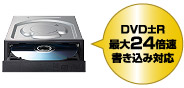1層DVD±Rメディアを使用した場合、最大24倍速の高速書き込みを実現。