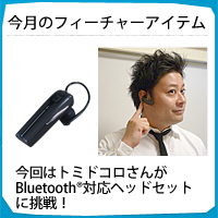 今月のフィーチャーアイテムは、Bluetooth®対応のスマホや携帯電話、パソコンなどと接続して高音質のハンズフリー通話ができるヘッドセットです。お笑い芸人トミドコロさんが、実際に使用し、その使い心地をレポートします。明るいキャラクター、独創的なネタで、現在ブレイク中のお笑い芸人「トミドコロ」さん。デジタルには興味がありながら超アナログ人間である「トミドコロ」さんが一念発起して「デジタルライフの達人」を目指します。