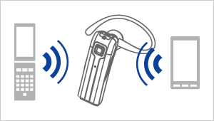 2台の対応機器を同時に待ち受けることが可能なので、例えば、ビジネス・プライベートの携帯電話の2台持ちといった場合に1台のヘッドセットにて待ち受けできます。