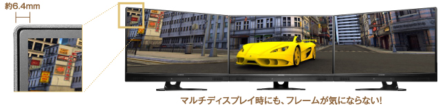 フレーム(枠)とパネル(表示領域)がフラットな「フレームレス」パネルを採用。フレーム最小部約6.4mmの「極細フレーム」!