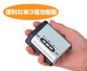 単3電池駆動だから、どこでも手軽に使用できます。