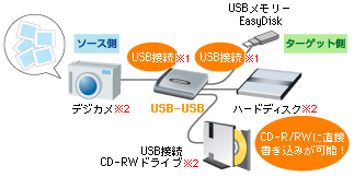 ●ソース側:弊社 EasyDiskシリーズ、弊社 メディアリーダーライター他