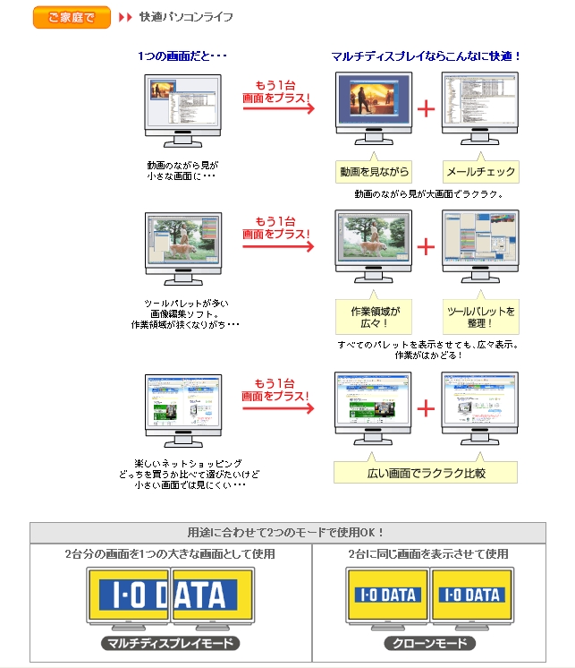 ワイド解像度に対応していないパソコンでも、「USBグラフィック」を使ってワイド液晶をプラス!