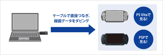 テレキングで録画した地デジ番組(※1)を、PlayStation®VitaやPSP®にダビングして再生できます。地デジならワンセグよりも高画質だからとってもキレイ!