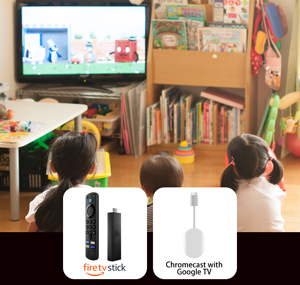 今や一家に一台はあるストリーミングデバイス。そこにREC-ONをつなげることでテレビを見ることができます。たとえば、日常的にはテレビを見ない子ども部屋や寝室では、普段はネット配信番組やYouTubeなどの動画アプリを楽しみ、テレビを見たいときには「REC-ON App」にスッと切り替えられるので、見たいときにすぐにテレビを見ることができます。