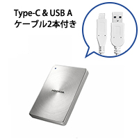 USB Type-CとUSB Aの2本のケーブルを同梱しているので、USB Type-Cコネクターが搭載されたパソコンだけでなく、従来のUSB Aコネクター搭載パソコンでも安心してご利用いただけます。
