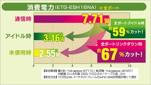 「ETG-ESH16NA」は3つの省電力技術を採用した「がっちり節電」モデルです。