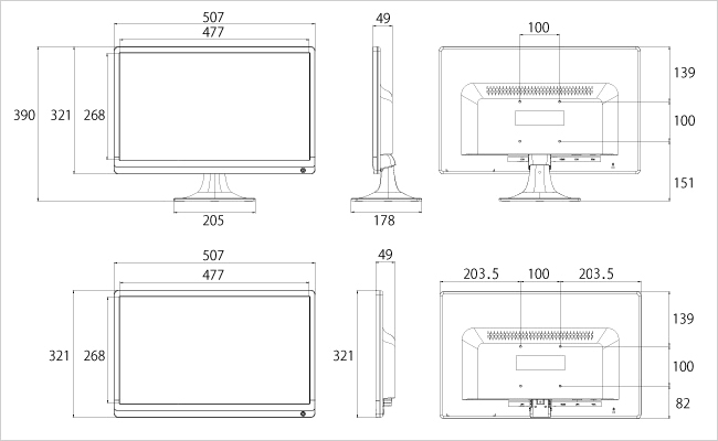 | 主な添付品 | 取扱説明書(保証書含む)、アナログRGBケーブル(1.5m)、DVI-Dケーブル(1.5m)、オーディオケーブル(1.5m) |