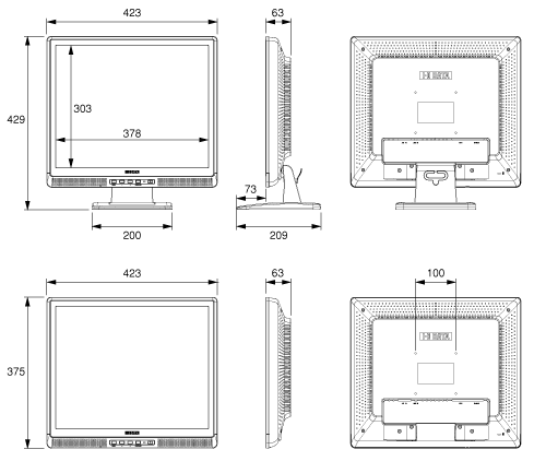 | 外形寸法 | 423×209×429mm/423×63×375mm (スタンドなし) | |