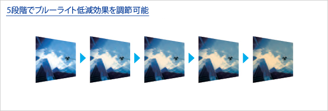 専用のメガネやフィルターを購入することなく、ディスプレイ自体でブルーライトを抑制して快適にお使いいただけます。
