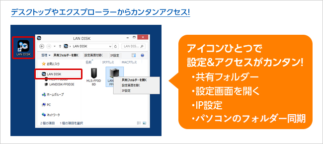 PC用アプリ「LAN DISK CONNECT」の詳細はこちら※ LAN DISK CONNECTの動作環境はこちらをご確認ください。