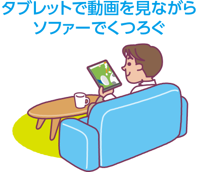 手軽に使えるタブレットやスマホなら持ち運びも自由自在。ホームネットワーク内にWi-Fiルーターを設置すれば、家中どこからでもくつろぎながら大好きな動画や音楽を楽しむことができます。