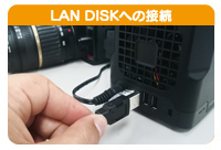 ランディスクのUSBポートに、デジカメに接続したUSBケーブルのもう一方を接続します。