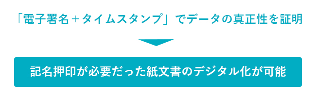 デジタル文書に本オプションを使用し電子署名を付与することで、法令で保存が義務付けられている文書類を紙から電子データに替えて保存することが可能です。