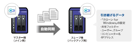 情報の同期には、LAN DISK Zの同期ソフト「クローン for Windows」を使用します。