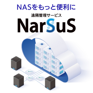 「NarSuS(ナーサス)」は、お客様に代わってランディスクの状態をインターネット経由で見守るサービスです。機器の設置場所を問わずPC・スマートフォンを使って一括管理できるので、管理者の負担を大幅に削減します。