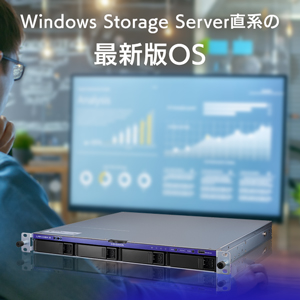 「Windows Server IoT 2022 for Storage」は、Windows Server 2022をベースとしたファイルサーバー専用のOSです。法人向けNAS筐体にプリインストールされ、Windows Server 2022のファイルサーバーを構築する場合と同等の環境をご提供します。