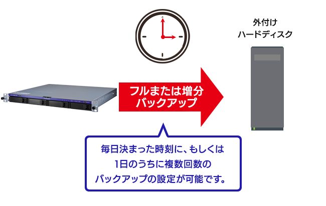 ※NASをバックアップ先とする場合、当社のLAN DISK Zシリーズ、およびLAN DISK H、Xシリーズのみご利用可能です。