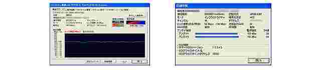 「クイックコネクト HG Extreme」は、無線LANアダプターの状態、電波強度などの接続状態や暗号化設定、IPアドレスの表示、無線LANのON/OFFなどを行うユーティリティです。リンク速度や電波強度をグラフで視覚的に判断できる他、詳細情報画面では、アンテナごとの電波強度、ノイズ値の表示なども確認することができます。