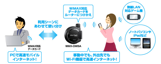 ※ モバイルWiMAXのご利用にはデータ通信サービス事業者との契約が必要です。