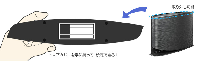 また商品本体のトップカバーに設定情報が記載されており、取り外しが可能なので手に持って楽にWi-Fi接続することが出来ます。