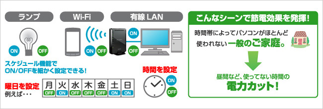時間帯によってはパソコンがほとんど使われることのない一般のご家庭などで、「省エネ」な環境を提供します。