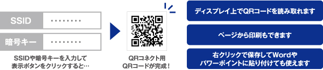 カメラ付きスマホやタブレットなら、専用アプリ「QRコネクト」でカンタン接続。添付の設定シートのQRコードを「撮る」だけで接続OKです。