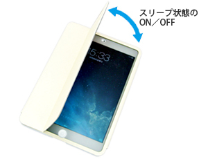 iPad/iPad Air対応モデルやiPad mini/iPad mini Retinaディスプレイ対応モデルは、外側のフラップ(カバー)の開閉に連動して、iPad/iPad miniのスリープ状態もON/OFFすることができます。