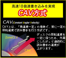 本製品では1層18倍速書き込み時にCAV方式を採用!7.4倍速から書き込みを開始し、連続的に書き込み速度が上がるため高速書き込みを実現しています!