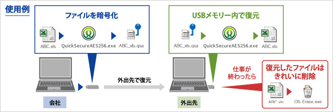 ドラッグ&ドロップのかんたん操作でファイルを暗号化/復元さらにファイルを完全削除することができる、ファイル暗号化ソフトウェア「QuickSecureAES256」に対応。