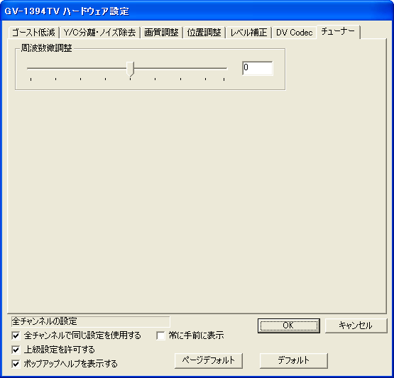 ファンクションパネルのチューナータブを選択することでチューナーページが表示されます。