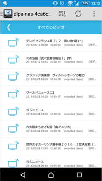 録画番組一覧が表示されるので、見たい番組をタップ。