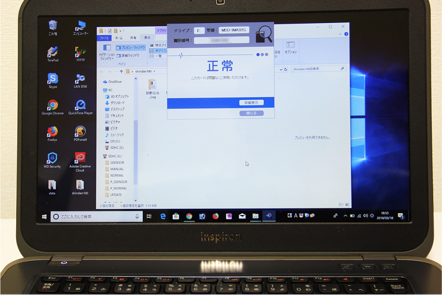 アプリの準備ができましたので、診断するmicroSDカードをPCに接続します。microSDカード「MSD-IMAシリーズ」はSDカード変換アダプター付きなので、アダプターを装着してからPCに接続します。