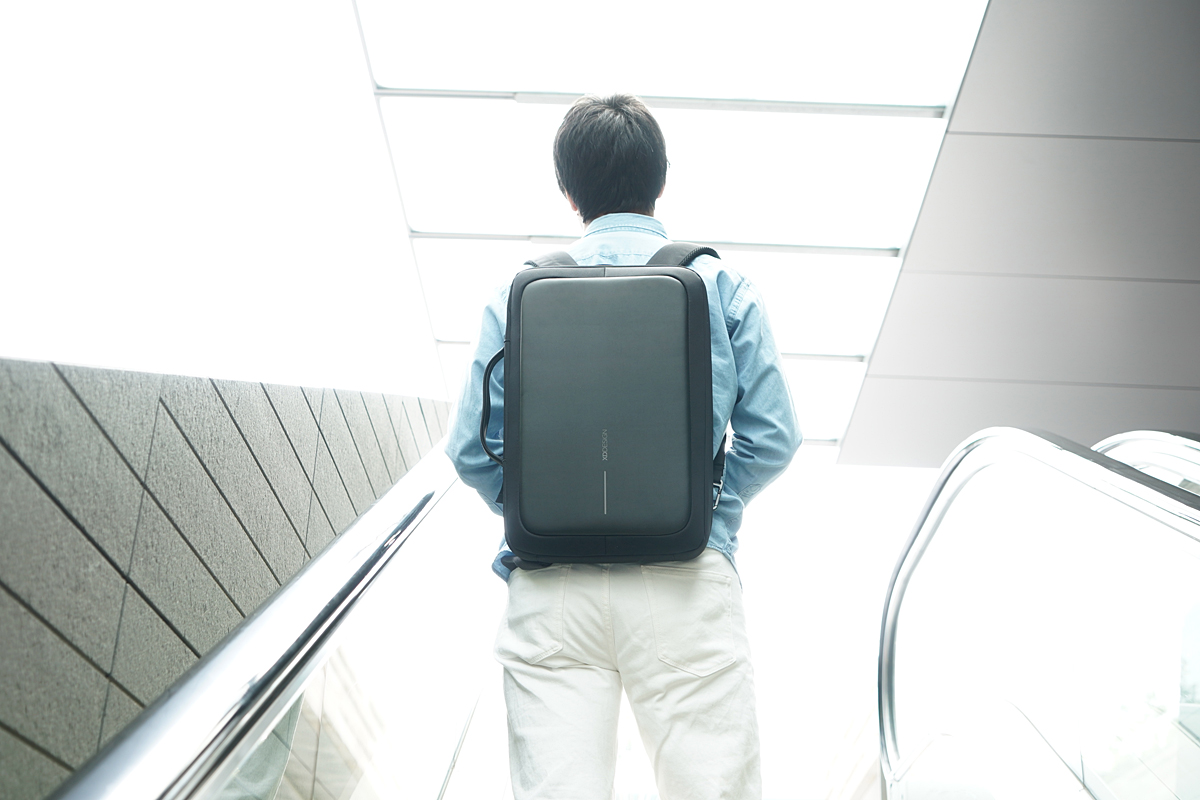 「Bobby」はオランダのXD Designが開発し、ヨーロッパやアメリカをはじめ、世界で100万個以上の販売実績があり、防犯、防刃、撥水性があるスリ被害を防ぐ多機能リュックとして認知されている。