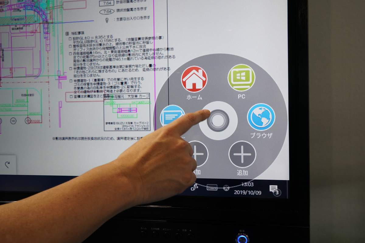 ・現場の確実な情報伝達と共有を高める「電子黒板」大型タッチディスプレイ