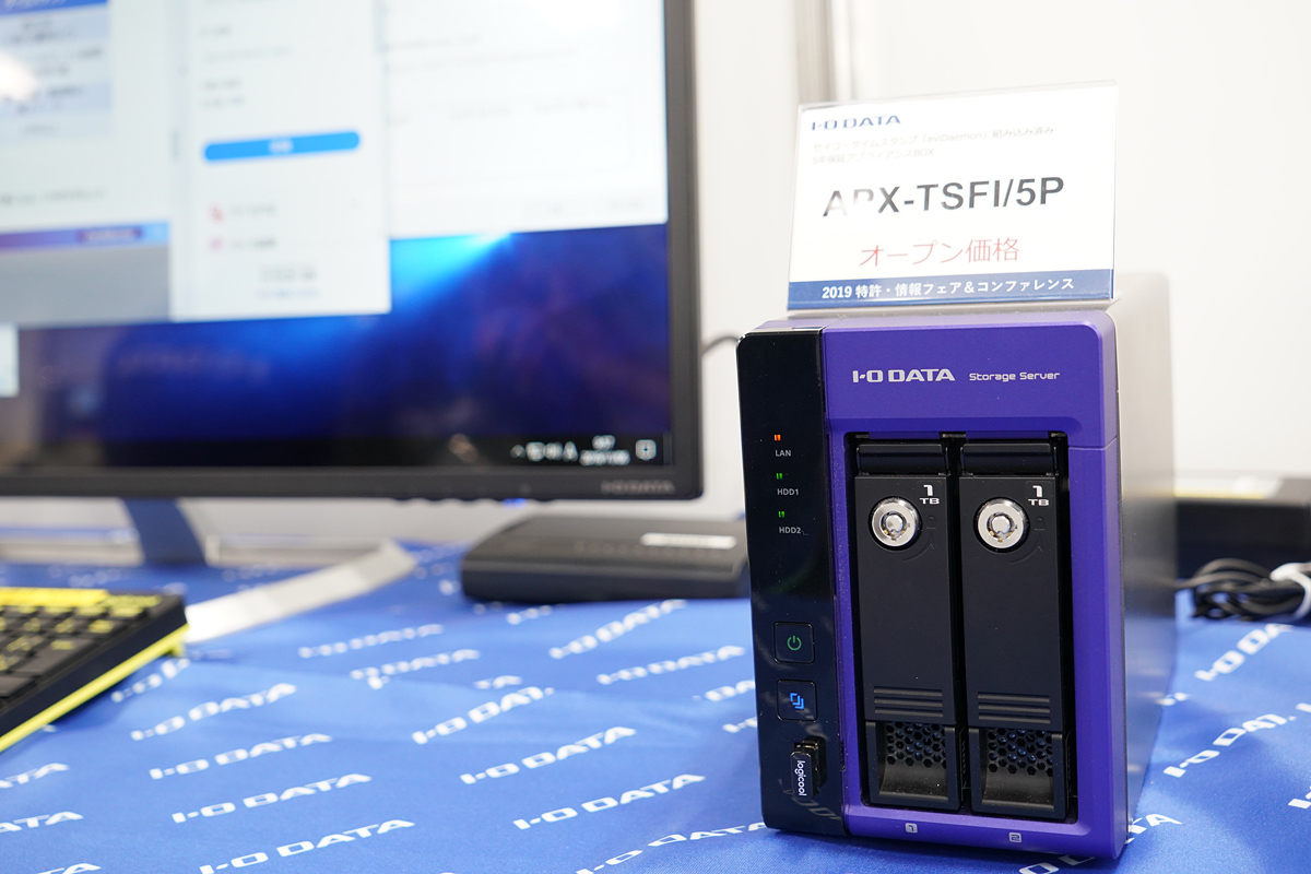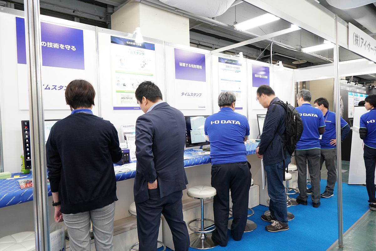 アイ・オー・データ機器もその技術を持つ一員として、数年前より、タイムスタンプソリューションを提案してきています。本フェアでもタイムスタンプの基礎から運用について、来場のみなさまに実際の画面を見せながらデモンストレーションを実施していきました。