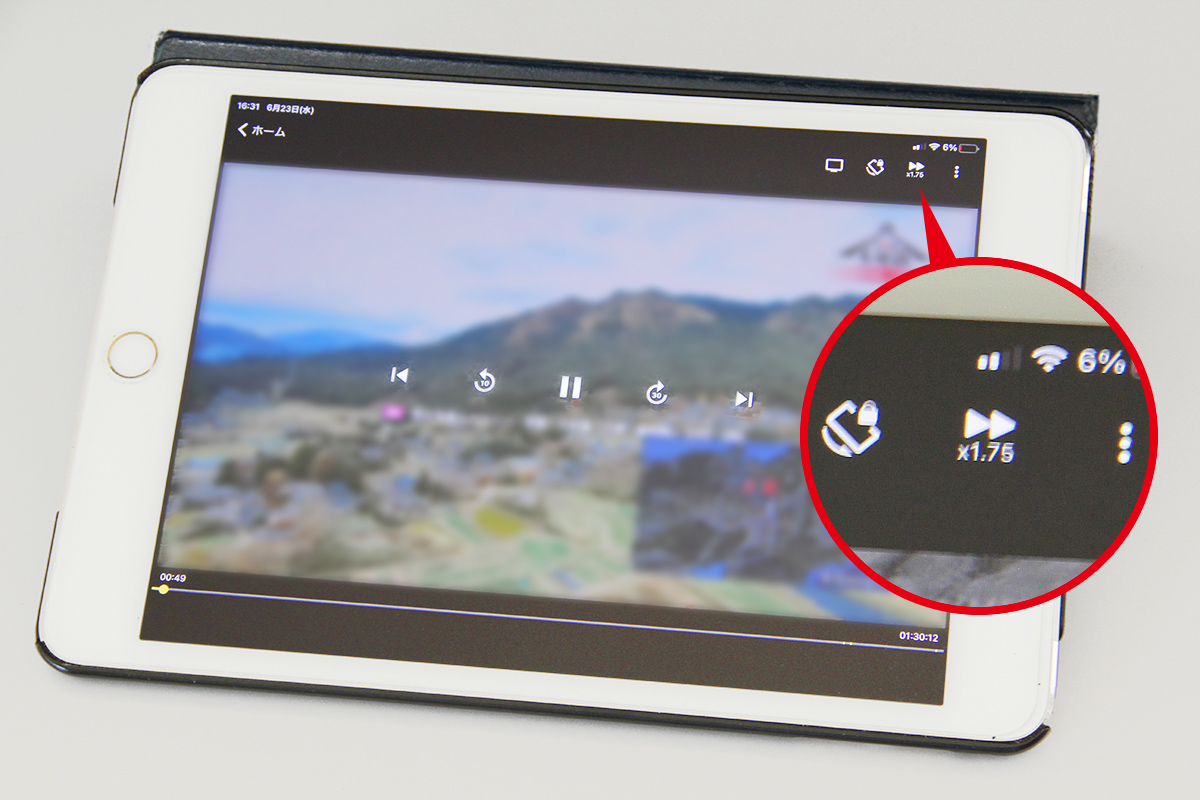 (写真)倍速の切り替えボタン(iPad miniの場合)