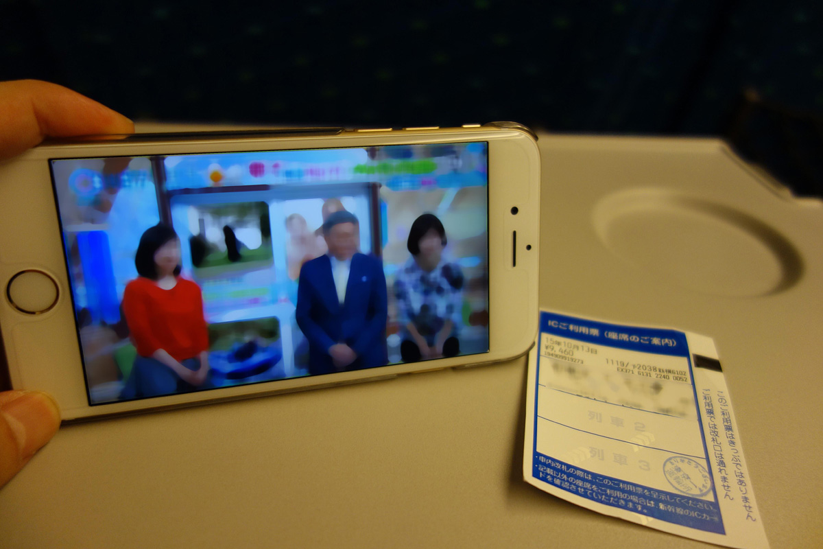 (写真)別日。東海道新幹線の乗車中。生放送中のNEWSを視聴。