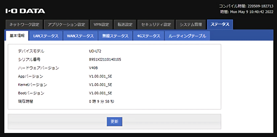 この状態で再度IPアドレスを確認します。「UD-LT2」が障害を検知して、自動で4G回線に切り替わりますので、契約したSIMカードで接続されたIPアドレスが表示しているのが分かります。