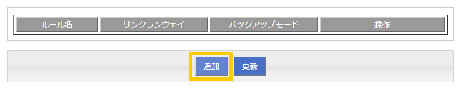 設定画面から[ネットワーク設定]→[リンクバックアップ]を開き、[追加]をクリックします。