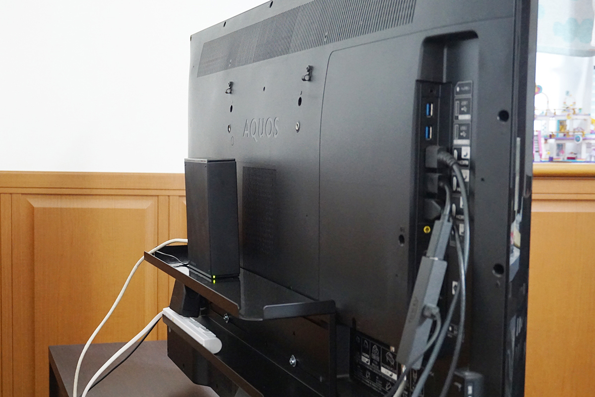 リビングに置かれた大画面テレビは、収納ができるテレビボードの上に設置される方も多いですね。テレビボードの中に、レコーダー、セットトップボックス、ゲーム機と一緒にNASも収納すればスッキリします。