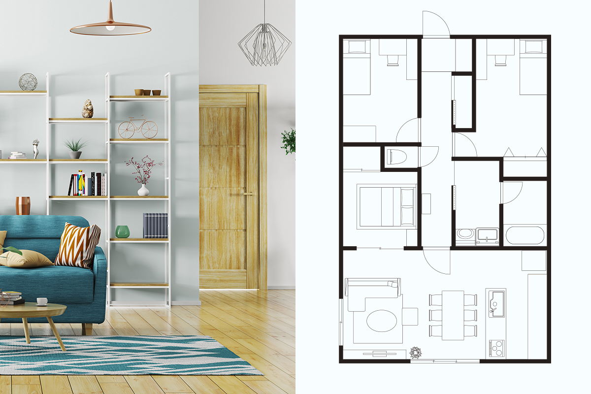 Wi-Fi電波は、水や金属、コンクリートなどの影響を受けやすく、マンションは鉄筋コンクリート製のため、木造住宅に比べ電波が弱くなりやすいです。1フロアの間取りなので、Wi-Fiルーターの設置場所も重要になり、各部屋から均等の距離に置くのが理想的です。